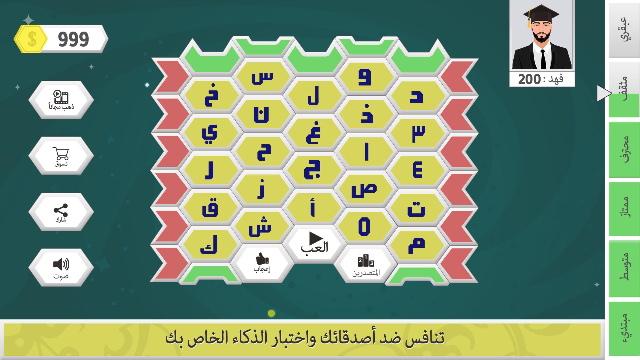Haroof هي لعبة ثقافية يمكنك الاستمتاع بها وتكون قادرة على دعوة أصدقائك واللعب معهم عبر الإنترنت